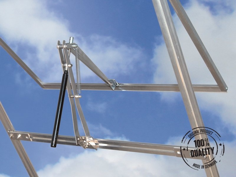 Robustní automatický otvírač pro střešní okno skleníku. Praktický píst s pákou, kterým nahradíte manuální otvírání. Píst funguje na bázi tepelné roztažnosti vosku a se zvyšující se teplotou ve skleníku hýbe s pákou a otvírá okénko.