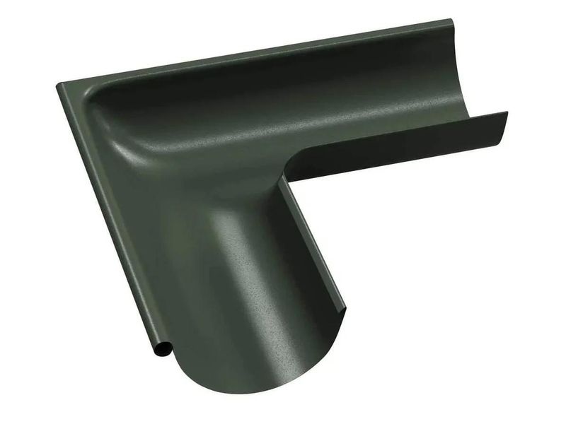 Barevný vnější roh okapového žlabu z pozinkovaného plechu je základním prvekm při odvodu vody za roh. Roh je kompatibilní s dalšími výrobky systému 125/90 mm. Obrázek je pouze ilustrační.