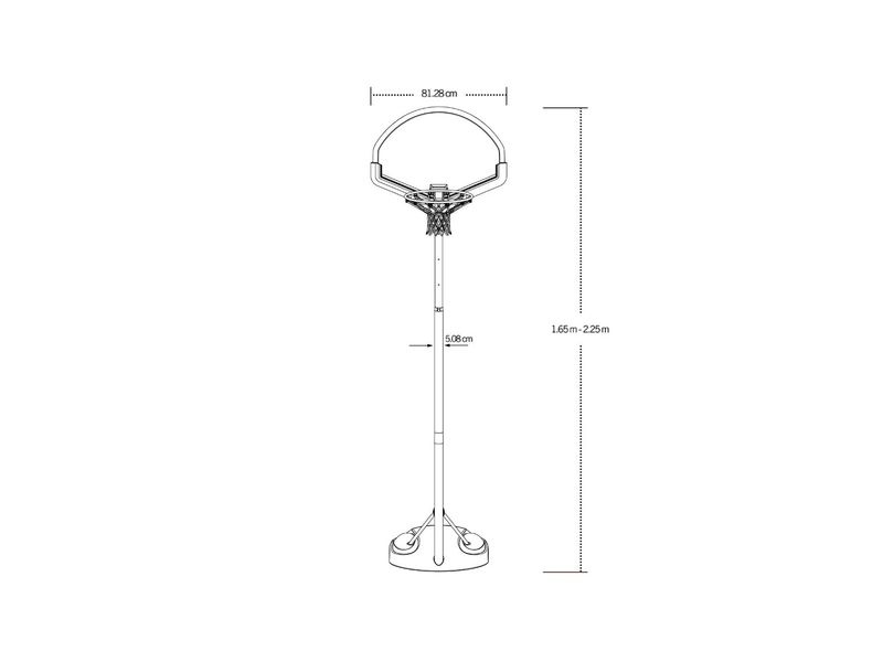 Díky teleskopickému mechanismu lze koš nastavit ve 4 krocích mezi 165 a 225 cm. Roste spolu s dětmi a hodí se pro malé hráče i mladé dospělé.