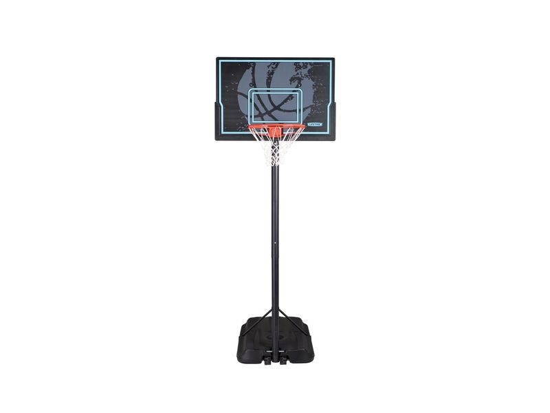 Deska o šířce 112 cm je vyrobena z HDPE plastu, téměř nerozbitného a potištěného UV-odolnými barvami. Koš z oceli a nylonová síť jsou vhodné pro každé počasí. Sloup je chráněn práškovou povrchovou úpravou, která prodlužuje životnost.