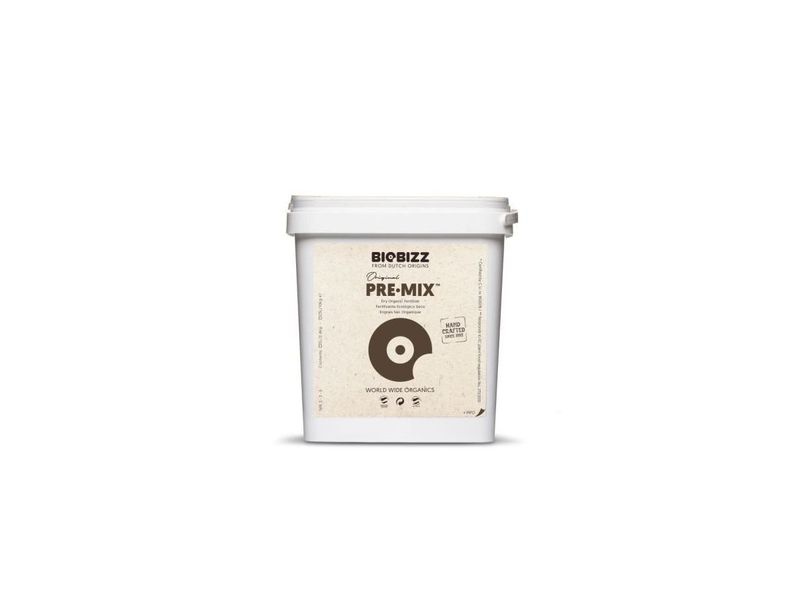 Biobizz Pre-Mix je unikátní práškové hnojivo, které slouží k obnovení přirozených vlastností vyčerpané půdy. Pre-Mix je směsí wormhumusu z kalifornských žížal, vulkanického prachu, stopových prvků a prospěšných hub.  Podporuje dynamický růst, bohaté kvetení a maximální odolnost proti chorobám a plísním, čímž zajišťuje odolné postavení rostliny a zdravý vzhled