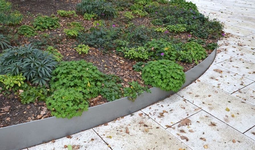 4. Ocelový obrubník – kromě plastu jsou oblíbeným řešením i ocelové obruby. Z hlediska odolnosti stojí na pomezí mezi betonovými a rovnými plastovými obrubníky. Oproti plastovým modelům nabízejí vyšší odolnost a delší životnost. Cenově jsou o něco dražší. Trendem posledních let jsou obrubníky z cortenové oceli.