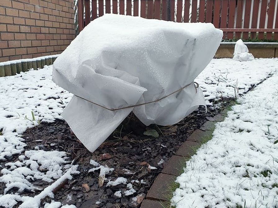 Chcete-li dopady zimního počasí zmírnit, postavte rostliny pod pergolu nebo jiný přístřešek u domu, kde budou lépe chráněny před sněhovými přeháňkami. Rostliny v květináčích je rovněž možné překrýt bílou netkanou textilií.