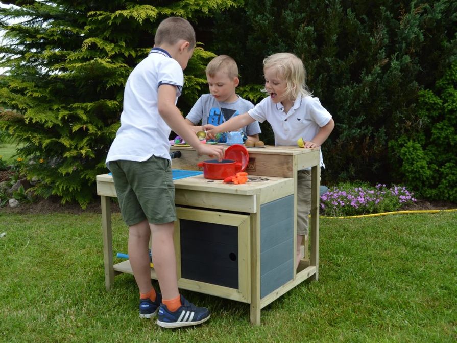 TIP: Trendem posledních let se staly tzv. blátivé kuchyně: dřevěná konstrukce imituje kuchyňskou linku se sporákem a dřezem. Stačí natáhnout zástěru a děti se promění v uznávané šéfkuchaře – i když navaří jenom z vody a bláta.