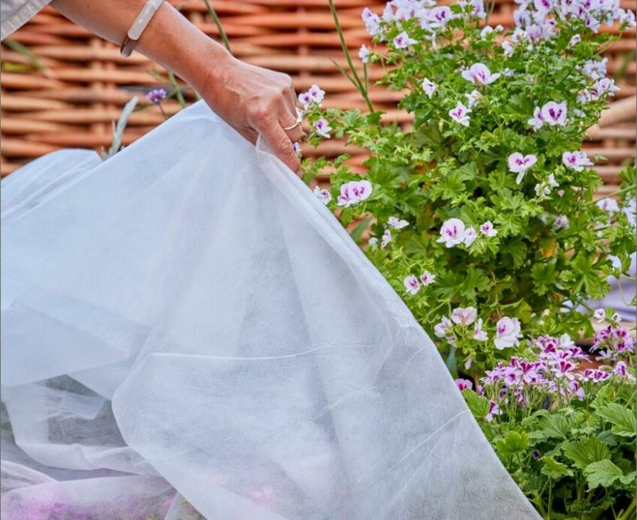 Pokud dochází k větším výkyvům teplot mezi dnem a noci, bílou textilii přes den odstraňte, aby měly muškáty více světla. Pokud se vám řešení zdá příliš pracné nebo teploty klesnou i během dne, ponechte textilii na místě.