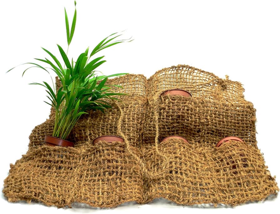 "Kapsy" z kokosové sítě pro květináče s rostlinami