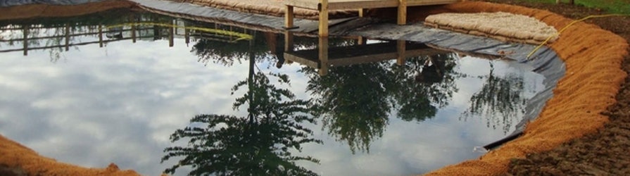 Kokosová síť v jezírku usnadňuje zakořenění a růst vodních rostlin a současně zachovává přírodní ráz vodní plochy.