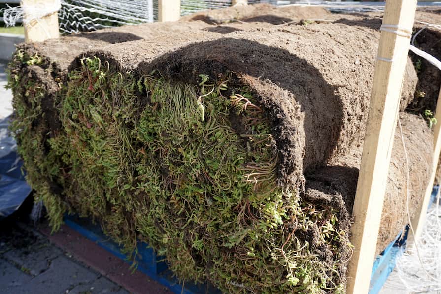 TIP: Při plánování počítejte s tím, že se rozchodníkové koberce dodávají od zbývajících materiálů v samostatné dodávce, protože se v pěstírně vyříznou z pěstební plochy jen den před dodávkou. Zároveň je dobré si práce naplánovat tak, abyste měli při dodávce koberců střechu již připravenou: aby rozchodníky nevysychaly, musí se položit ideálně nejpozději do jednoho dne po dodávce. V případě odkladu pokládky je třeba rozchodníkové koberce uchovat v chladu a dostatečné vlhkosti. Přesto s pokládkou neotálejte, protože může dojít k jejich poškození.
