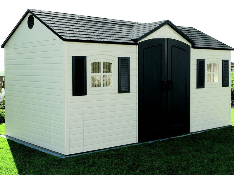 Praktický domek z dílny amerického výrobce nabízí především moderní design a možnost celoročního využívání. Oproti kovovým domkům je tento model domku vyroben z téměř nerozbitného plastu (polyetylen o síle 26 mm), který ustojí i větší tlak (např. při nárazu míče). Materiál navíc odolává UV záření a při vystavení slunci nežloutne ani nekřehne.