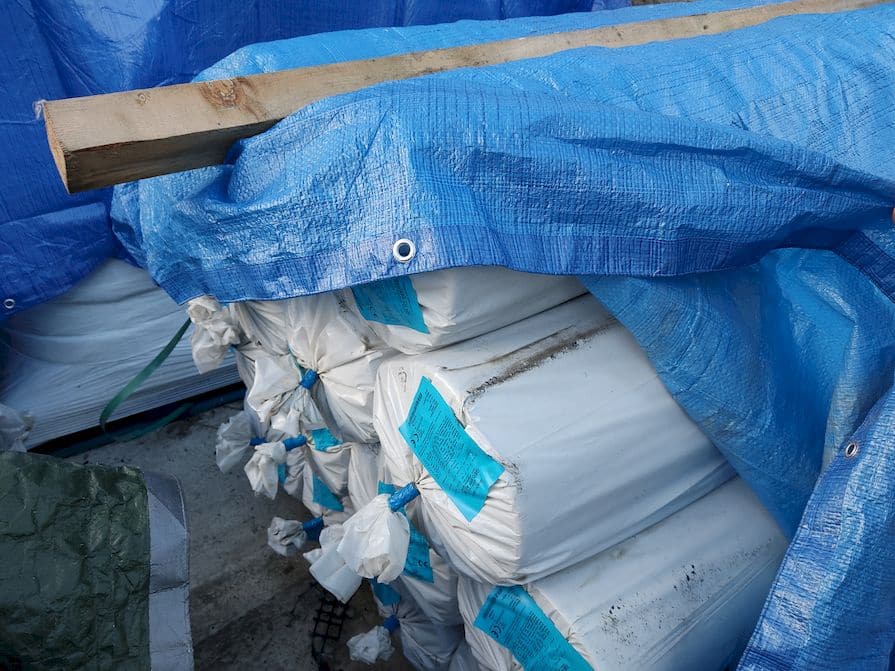 Ilustrační foto. Tkaná geotextilie položená na upravený povrch před výstavbou zahradního přístřešku.