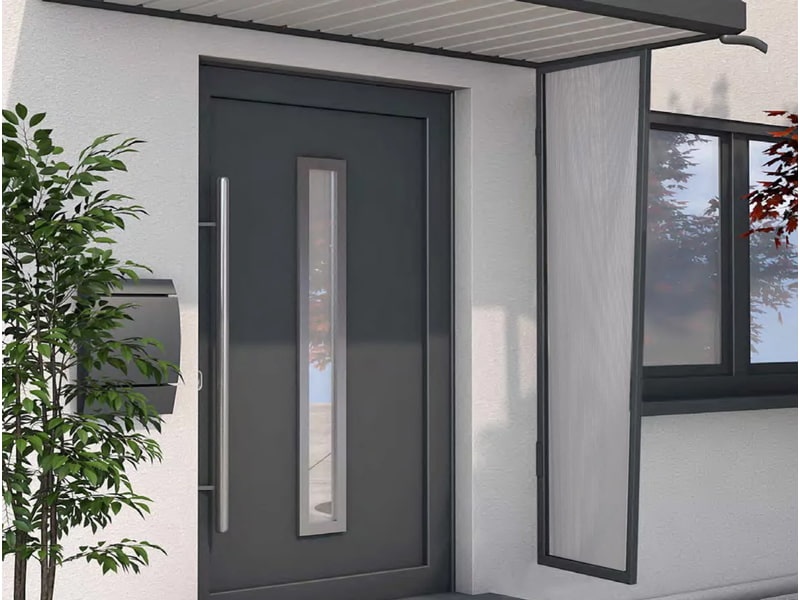 Možnost dokoupení vchodové stříšky ve stejné barvě, v jaké jsou nabízené bočnice.