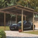 Dřevěný přístřešek pro auto (tzv. carport). Přístřešek byl vyroben v Německu. Tento model garážového stání výborně poslouží jako ochranný přístřešek pro váš automobil. Můžete ho využít jako dočasný úkryt zahradního traktůrku, lodi nebo pod něj postavit sušák s prádlem, pokud váš venku překvapí déšť.