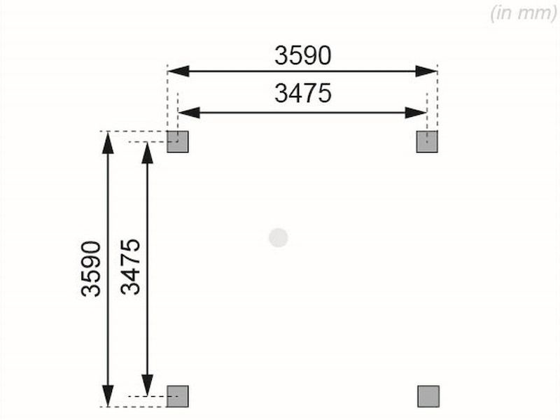 Vzhledem k velkým plochám střechy a zatížení větrem je nutné přístřešek pro auto připevnit k zemi pomocí odpovídajících zemních kotev (nejsou obsahem dodávky – lze dokoupit jako příplatkové příslušenství).