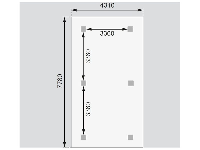 Vzhledem k velkým plochám střechy a zatížení větrem je nutné přístřešek pro auto připevnit k zemi pomocí odpovídajících zemních kotev (nejsou obsahem dodávky – lze dokoupit jako příplatkové příslušenství).