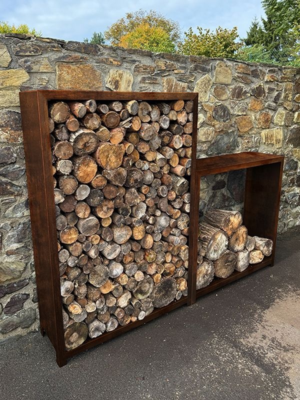 • Dřevníky mohou sloužit jako solitérní prvek v zahradě, nebo se stát součástí větší kompozice – například spolu s dalšími výrobky z cortenu, se kterými designově ladí.
