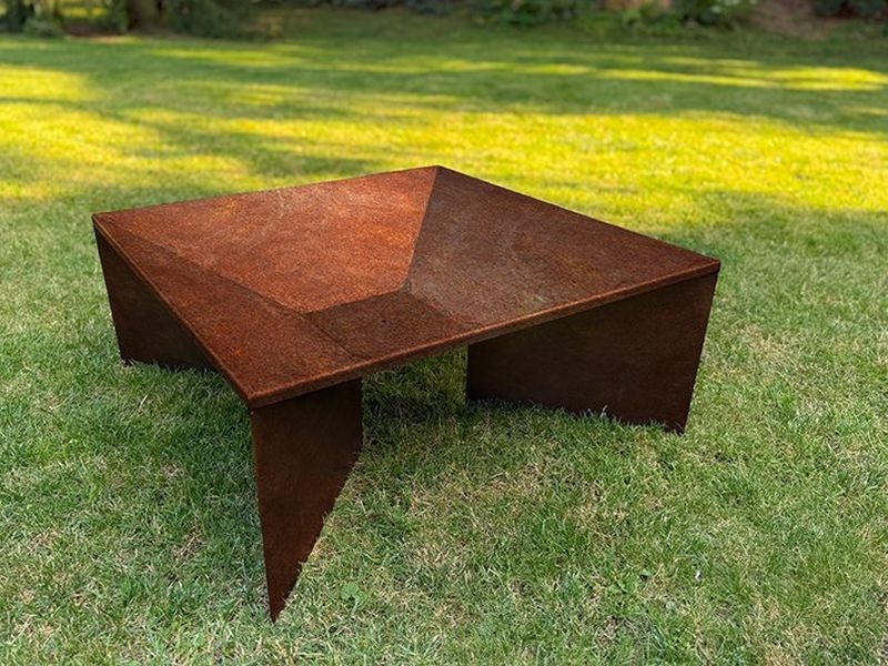 Díky konstrukci z cortenu je možné v ohništi bezpečně pálit dřevo bez roštu. Pro grilování lze dokoupit ocelovou plotnu nebo nerezový grilovací rošt.