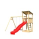 Dětské hřiště s půdorysem 347 × 264 cm a věží o rozměrech 107 × 107 × 270 cm je vyrobeno z toho nejlepšího smrkového dřeva. Naše dřevo pochází ze vzdáleného severu Evropy a je chemicky naprosto neošetřené. V důsledku toho neobsahuje žádné známé problematické látky. Hřiště má nosné sloupy o tloušťce 68 × 68 mm a je vyrobené z dřevěných profilů o síle 18 mm (spoje v systému pero/drážka). Terasa s domkem se nachází ve výšce 125 cm, tím hřiště nabízí dětem dokonalý výhled na zahradu. Sedlová střecha je vyrobena z dřevotřískových desek. Hřiště je standardně vybaveno robustním dřevěným žebříkem se 4 příčkami a pískovištěm pod věží.