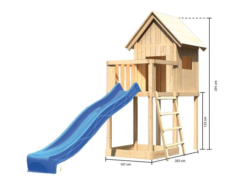 Dětské hřiště Karibu Frieda přináší vašim dětem bezpečnou a zábavnou herní plochu s dlouhou životností. Věž, dřevěná rampa, skluzavka a prostor pro pískoviště pos­kytnou dětem spoustu možností ke hrám a zaručí zábavu na dlouhé hodiny.