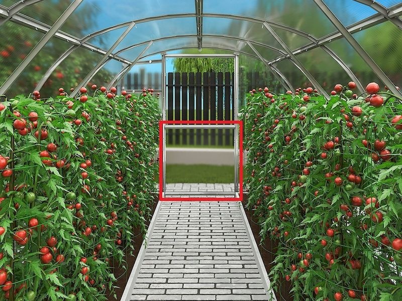 Dodatečné zadní dveře pro zahradní skleníky TIBERUS. Po namontování dveří bude skleník průchozí.
