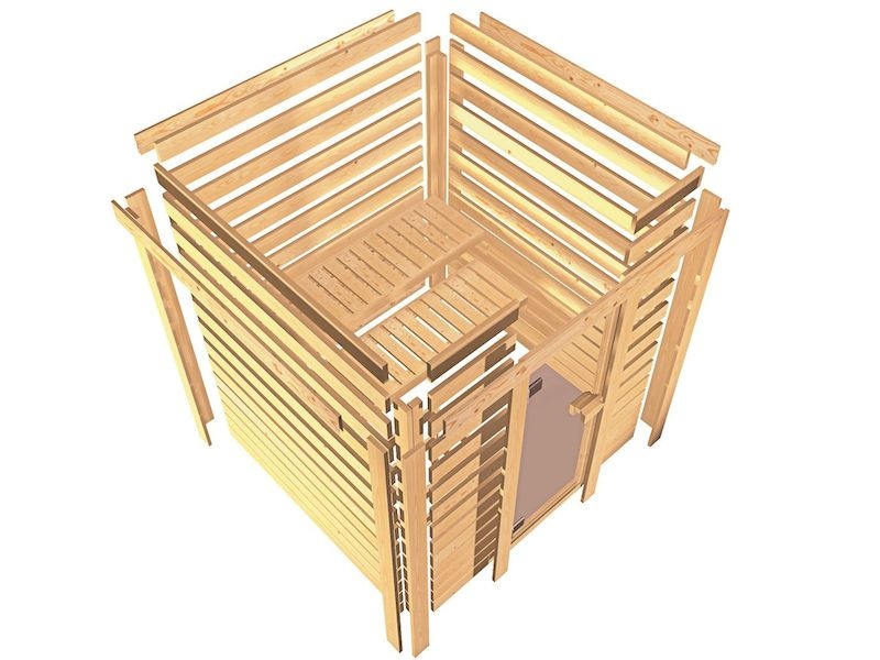 Domácí sauna je celá vyrobena ze dřeva severského smrku v přírodním provedení. Dřevo pochází ze vzdáleného severu Evropy a je chemicky naprosto neošetřené (není ani namořeno ani nalakováno). V důsledku toho je prosté známých problematických látek, které by se v průběhu saunování mohly ze dřeva uvolňovat.