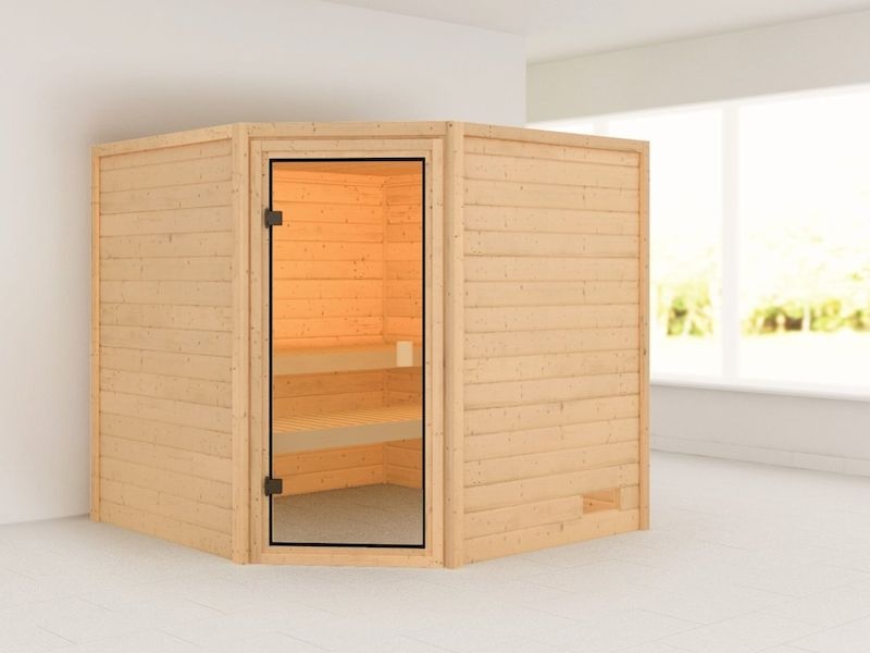 Domácí finská sauna Karibu Tilda má rozměry 195 × 169 cm a je vybavena rohovými dveřmi. Tento model finské sauny je určený do temperovaných interiérů domu nebo bytu. Sauna je určená až pro dvě osoby.
