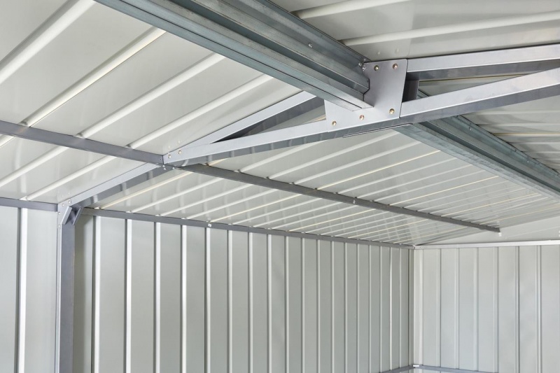 Jedná se o klasickou technologii zinkování nejvyšší kvality, kdy je ocelový plech na krátkou chvíli ponořen do vany s roztaveným zinkem, který pak v tenké vrstvičce zůstane na povrchu oceli a chrání ji tak před korozí. Jde o mnohem kvalitnější metodu než v poslední době obvyklé elektrolytické zinkování. Domek je možné použít k uskladnění zahrádkářských, sportovních, bazénových, grilovacích, campingových, motoristických a dalších potřeb.
