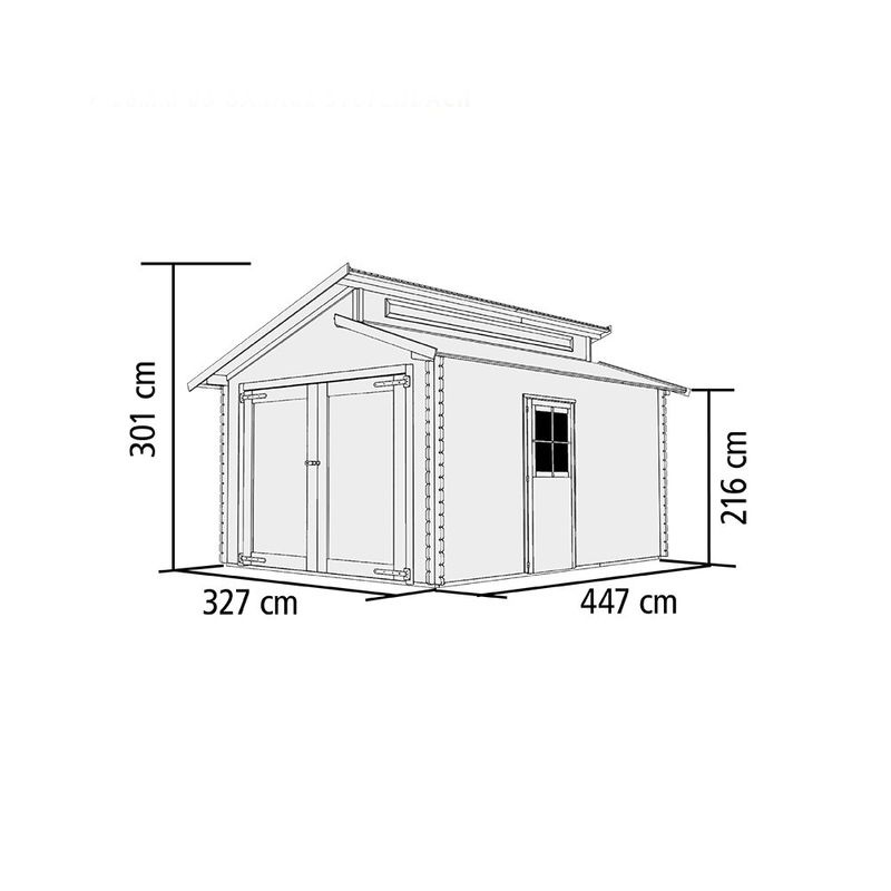 Německá garáž z přírodního dřeva pro menší vozidlo. Tloušťka stěny 28 mm poskytuje jistotu a stabilitu bytelné dřevostavby. Pohodlný vjezd do garáže zajišťuje velká dvoukřídlá brana o rozměrech 238 x v 193 cm (š × v). Nemusíte se tedy obávat, že byste při couvání museli složitě manévrovat.