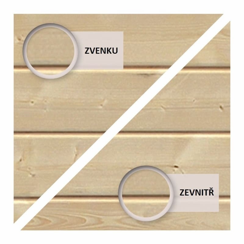 Tento model domku dodáváme v provedení přírodního dřeva. Před montáží musí být všechny stavební díly ošetřeny hluboko působícím základním nátěrem a preventivním nátěrem proti zamodrání a plísni, a to z vnější i vnitřní strany dílců. Pro konečný nátěr použijte i ve vnitřním prostoru povětrnostně odolnou lazuru s dobrými fyzikálními vlastnostmi, která ochrání dřevo proti vlhkosti a slunečnímu záření.