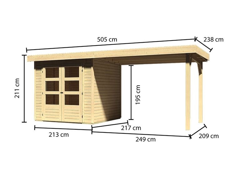 Dřevěný zahradní domek s přístavkem (208 cm) Karibu Askola 2 natur (přírodní dřevo)