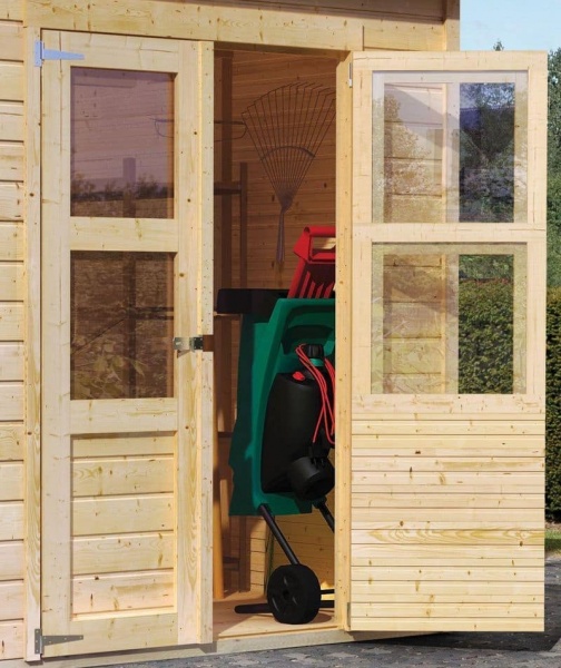 Základní model dřevěného domku s přístavkem pro vaši zahradu. Tento model má pultovou střechu a dvoukřídlé dveře na pantech s oknem v každém křídle. Stavebním materiálem domku jsou dřevěné profily o síle 19 mm, které jsou perfektně vyfrézované ze severského smrku.