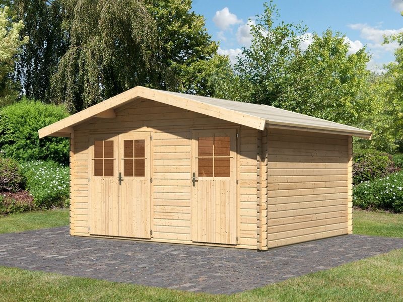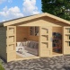 Dřevěný zahradní domek s kvalitnější silnější stěnou. Tento model má sedlovou střechu a dvoukřídlé dveře na pantech s oknem v každém křídle. Stavebním materiálem domku jsou dřevěné profily tl. 38 mm perfektně vyfrézované ze severského smrku.
