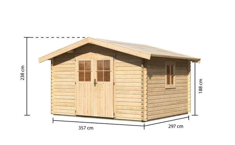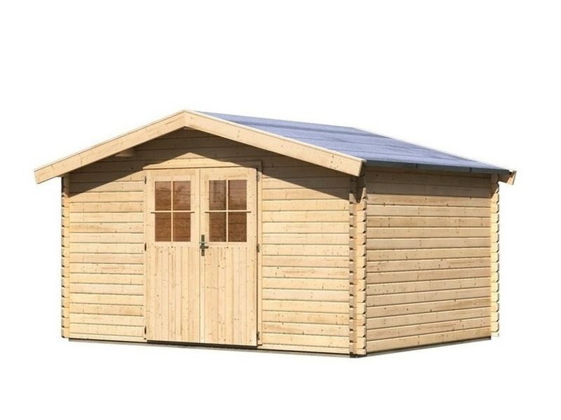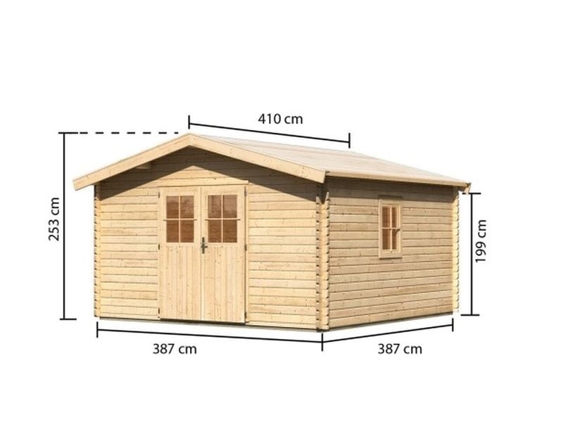 Dřevěný domek se silnou masivní stěnou. Tyto modely mají sedlovou střechu a dvoukřídlé dveře na pantech s oknem v každém křídle. Stavebním materiálem domku jsou profily o síle 40 mm, perfektně vyfrézované ze severského smrku.