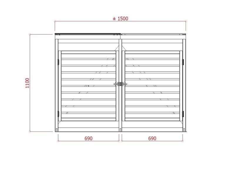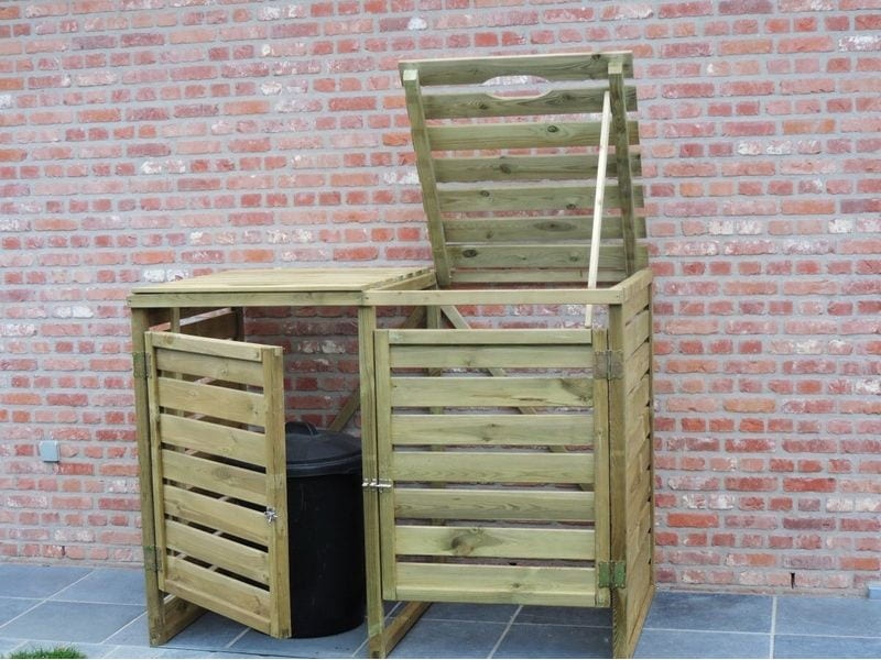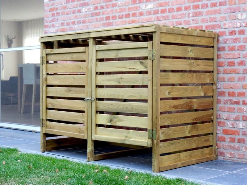 Dřevěné úložné boxy na 2 popelnice. Dřevo je ošetřeno tlakovou impregnací proti plísní, přesto ho doporučujeme ošetřit vhodnou povrchovou úpravou pro venkovní dřevo podle vlastní volby, tzn. protiplísňovým nátěrem plus např. lazurou.