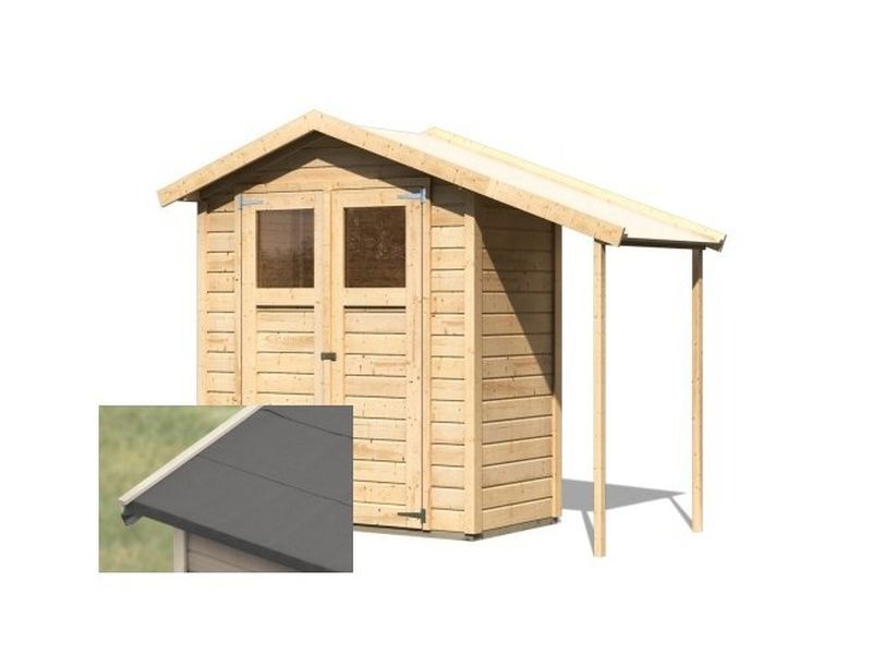 Tento model domku dodáváme s FINÁLNÍ ŠEDIVOU STŘEŠNÍ SAMOLEPÍCÍ BITUMENOVOU KRYTINOU (3,3 mm) jako dárek. V balení je veškeré potřebné kování.