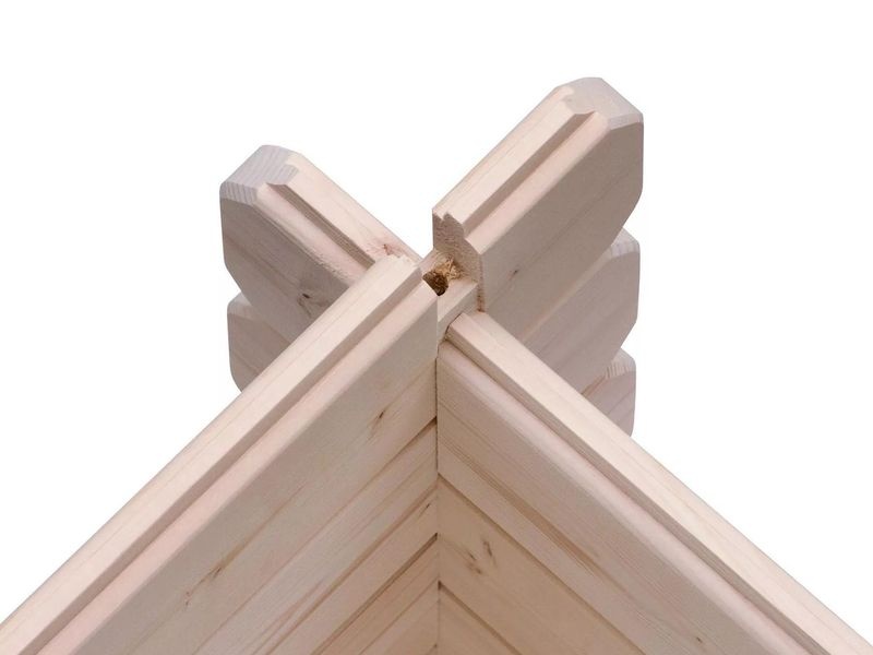 Významnou předností je patentovaný rohový spoj 6-Plus, který zvyšuje pevnost konstrukce a zároveň usnadňuje montáž. Domek je dodáván jako stavebnice v rozloženém stavu.