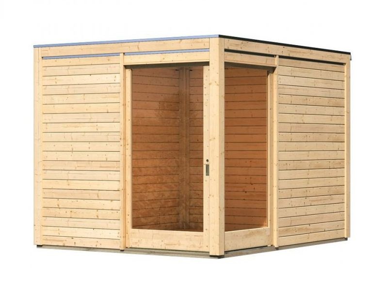Designově velmi zajímavý domek v moderním stylu s plochou střechou. Stavebním materiálem domku jsou profily o síle 28 mm perfektně vyfrézované ze severského smrku. Zahradní domky Qubu Eck jsou dostupné v provedení natur (přírodní dřevo) nebo tmavě šedě barvě (RAL 060 40 05).