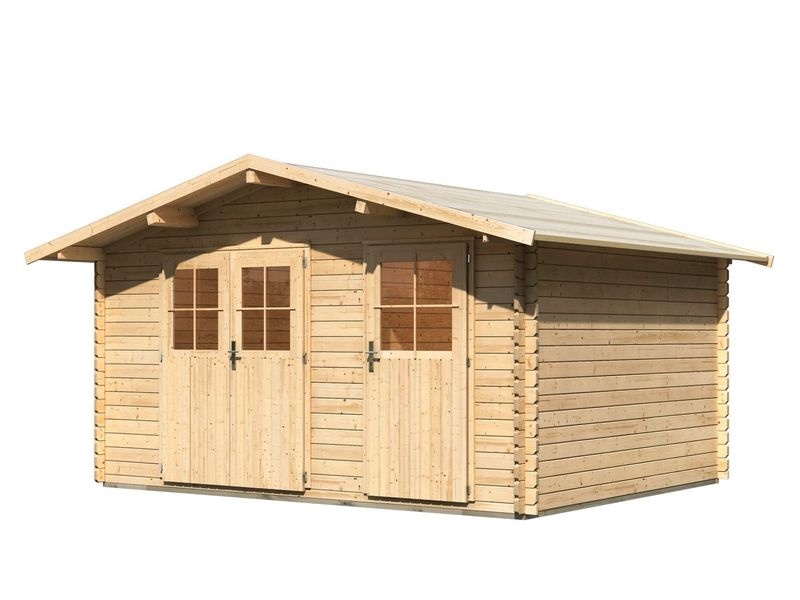 Dřevěný zahradní domek s kvalitnější silnější stěnou. Tento model má sedlovou střechu a dvoukřídlé dveře na pantech s oknem v každém křídle. Stavebním materiálem domku jsou dřevěné profily tl. 28 mm perfektně vyfrézované ze severského smrku.