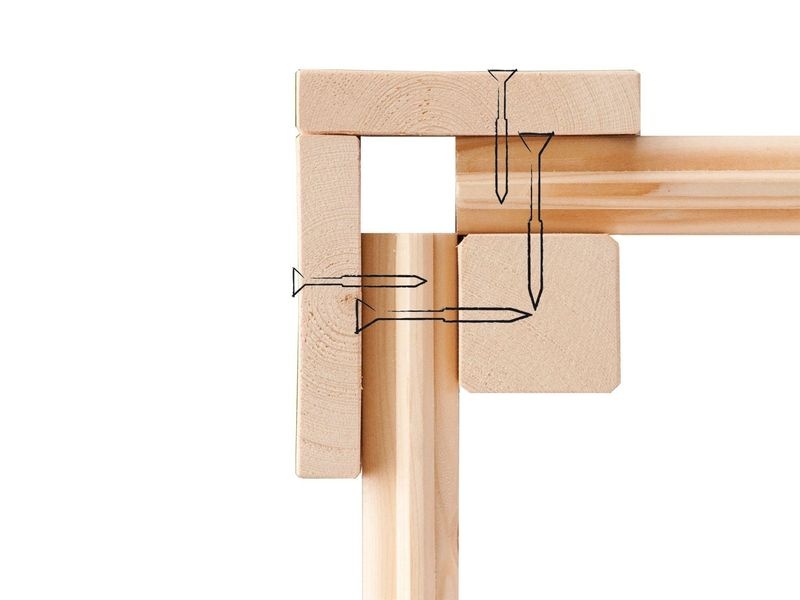 Položení podlahy je nutné v případě, že domek postavíte na měkkém povrchu. Vlastní originální podlaha se skládá z 19 mm masivních smrkových profilů s pérem a drážkou. Podkladová konstrukce (nosný rám) je tvořena 60 mm širokými, tlakově impregnovanými podlahovými nosníky (součástí balení).