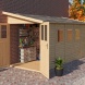 Dřevěný zahradní domek ke zdi. Vnější rozměry: š. 181 × d. 442 cm. Barva: přírodní dřevo. Bytelný přístřešek pro posezení s přáteli nebo jako bouda na nářadí. Dřevěné profily jsou vyrobeny z prémiového severského smrku. Síla stěny: 19 mm. Zastavěná plocha: 8 m².