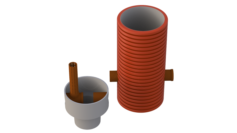 Jediná samonosná konstrukce tohoto typu. Filtr, instalovaný v délce přítoku a před nádrží, dovoluje účinně oddělit pevné nečistoty z dešťové vody. Skládá se z pláště s průměrem 680 mm a usazovací nádrže s košem na znečištění s objemem 15 litrů.