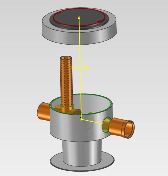 Konstrukce filtru je složená z pláště z vroubkované trubky PP s vnitřním průměrem 600 mm a vnitřním košem na znečištění, síty a přívodem. Celek uzavírá kryt z umělé hmoty. Volitelně je možno objednat litinový kryt.