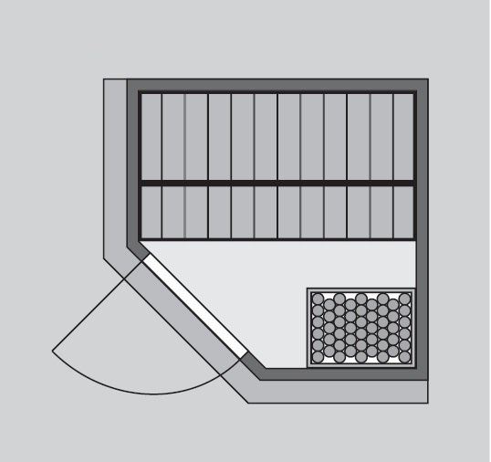 Celoskleněné rohové dveře jsou z kouřově šedého bezpečnostního skla o síle 8 mm s antracitovou rukojetí. Dveře je možné namontovat jako levé nebo pravé. Sauna nemá vlastní podlahu, proto je potřeba saunu umístit výhradně v místnosti s odpovídající podlahovou krytinou, nejlépe dlažbou. Finskou saunu dodáváme bez střešního věnce a bez LED osvětlení.
