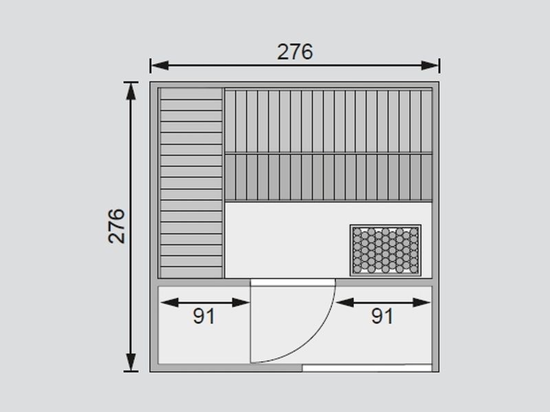 Kamna nejsou obsahem dodávky venkovní sauny. Vzhledem k tomu, že se jedná o zahradní sauny, doporučujeme dokoupit 9 kW kamna. Vyžadují 400 V, jištění 16 A, kabel 5 × 2,5 mm a odborné zapojení.