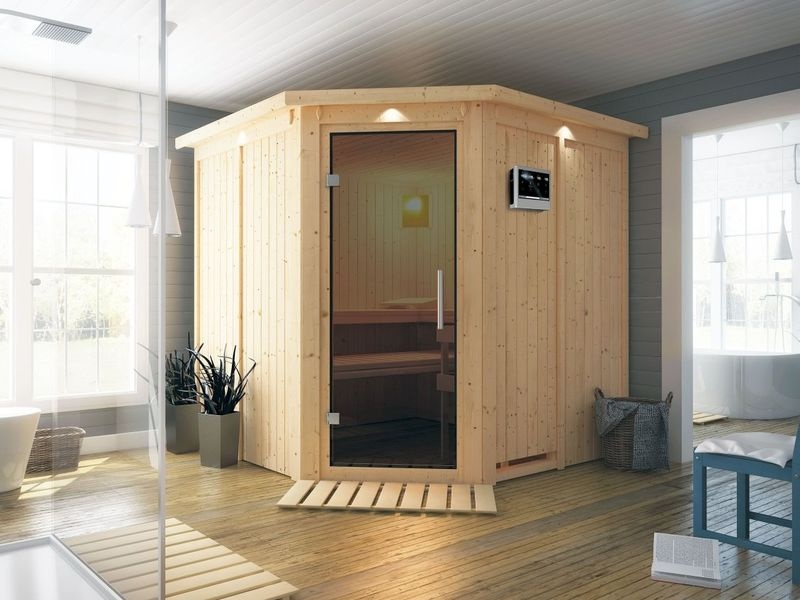 Domácí finská sauna Karibu Jarin o rozměch 196 × 196 cm je vhodná do temperovaných interiérů domu nebo do bytu. Výrobce, firma Karibu Holztechnik z německých Brém, dokázala svými výrobky úspěšně navázat na staletou tradici skandinávského saunování a současně do ní zapracovat dnešní moderní technologie. Saunu mohou současné využívat tři osoby.