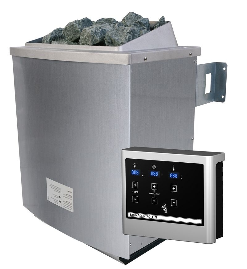 Kamna dodáváme s integrovaným ovladačem přímo na kamnech nebo s integrovaným ovladačem přímo na kamnech nebo s externím digitálním ovladačem (pro montáž zvenku sauny). Všechny modely kamen mají vnitřní části z koroze odolných materiálů a jsou dodávány včetně saunových kamenů o hmotnosti 18 kg.