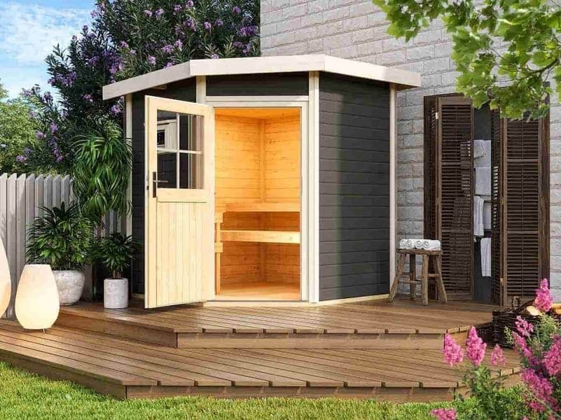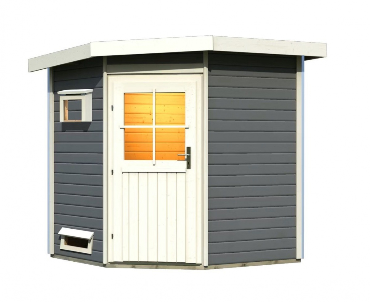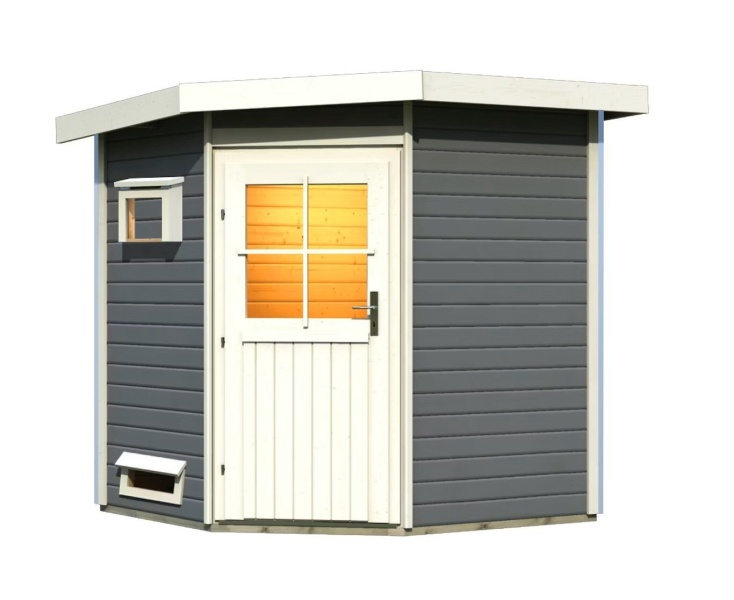 Venkovní model finské sauny pro užívání si saunování v pohodlí domova. Moderní design s chromovými rohovými lištami doplňuje tradiční krásu dřeva. Sauna přijde v rozloženém stavu jako stavebnice. Jednotlivé dřevěné profily pouze sesadíte k sobě a sešroubujete. Střechu tvoří celistvá deska. Tuto jednoduchou montáž zvládne každý kutil.
