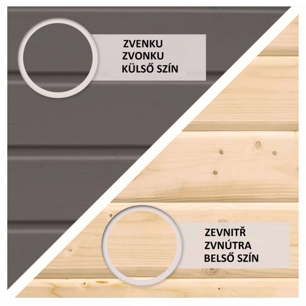 Tento model domku dodáváme v profesionálním nátěru KARIBU (odstín terragrau). Z vnější strany jsou dřevěné profily již ve výrobě natřeny vodoodpudivou barvou, která chrání dřevo před UV zářením a počasím. Vnitřní strana desek zůstává v přírodním, a tudíž neošetřeném stavu. Do budoucna s tímto nátěrem ušetříte čas, peníze i práci.