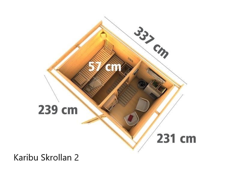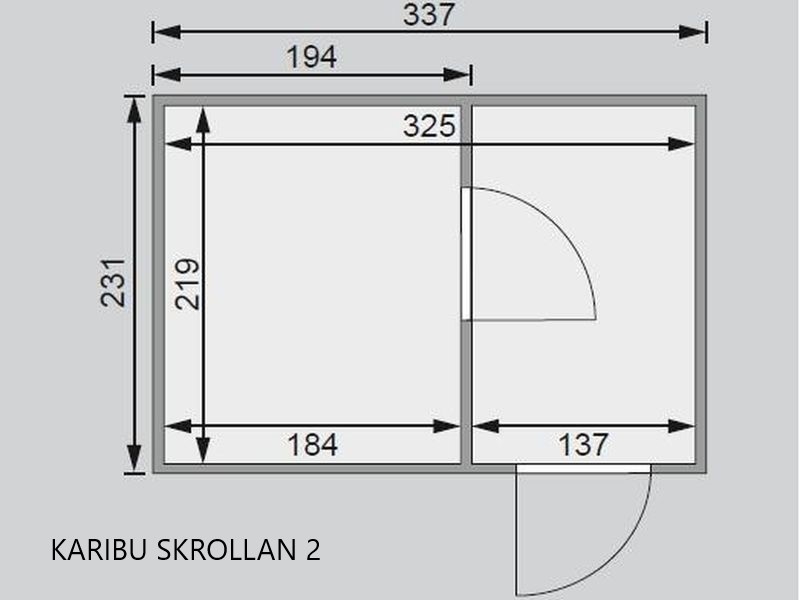 | Karibu Skrollan 2 | 326 × 116 × 97 cm (824 kg) | 197 × 84 × 27 cm (50 kg) |