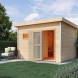 Venkovní finská sauna s předsíní, která je ideální pro saunování v přírodě. Moderní design s chromovými rohovými lištami. Zahradní saunu dodáváme jako stavebnici v rozloženém stavu. Stěny tvoří dřevěné profily o síle 38 mm, které jednoduše sesadíte k sobě a sešroubujete. Střechu tvoří celistvá deska. Montáž tak zvládne každý zručný kutil.