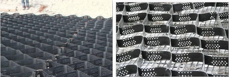 Geobuňky jsou vyrobeny z texturovaných perforovaných plastových pásů z vysokohustotního polyetylenu (HDPE). Pásy s určitou výškou jsou spojeny ultrazvukovým svarem a tvoří systém podobný struktuře „včelí plástve“.